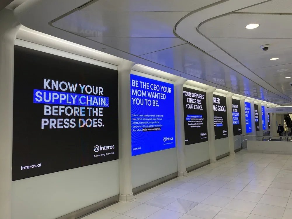 Interos bought double page spreads in NYC, LA and DC and dominated the billboards of those cities in launch week.